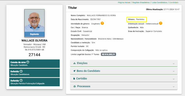 Das 12 candidatas registradas pelo DC, seis apresentaram prestação de contas zerada, sem movimentação financeira ou evidências de campanha. Esses elementos configuram fraude à cota de gênero, segundo a jurisprudência do Tribunal Superior Eleitoral (TSE).