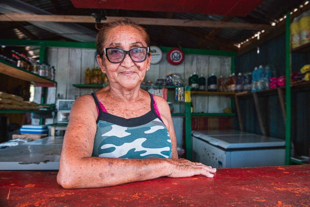 “Aqui tem que ser adequada à realidade, né? Quando é a época agora que está cheio o rio, fica fácil para trazer as coisas. A gente traz da Ceasa, de carro, bota na lancha, normal. Aí quando seca, a gente tem que pegar na Ceasa, trazer para a beira do rio lá, carregar de carro, de mão ou no ombro, 60 metros, colocar no outro bote para chegar aqui”, afirmou ele.