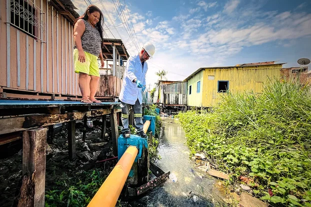 A região de palafitas conhecida como Beco Nonato, no bairro Cachoeirinha, zona Sul, foi a primeira área desse tipo em Manaus a receber coleta e tratamento de esgoto, por meio de um projeto que se tornou política pública em 2023, conforme explica o gerente de eficiência operacional da concessionária Águas de Manaus, Marlon Ferreira.