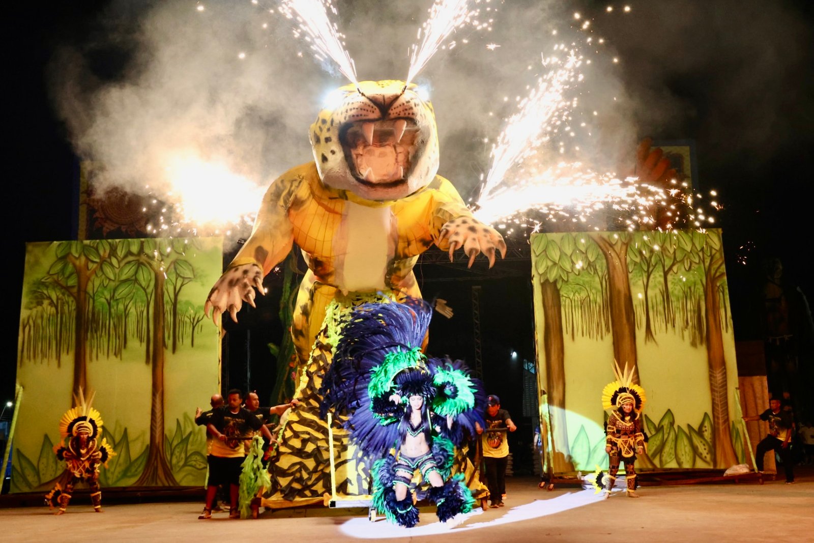 Em uma alegoria inspirada na lenda amazônica da Rasga Mortalha, o Aquário ganhou vida com a entrada de Geovana Araújo, cabocla, ao som de “Morena Tropicana”, em uma representação simbólica do encontro entre o Nordeste e a Amazônia.