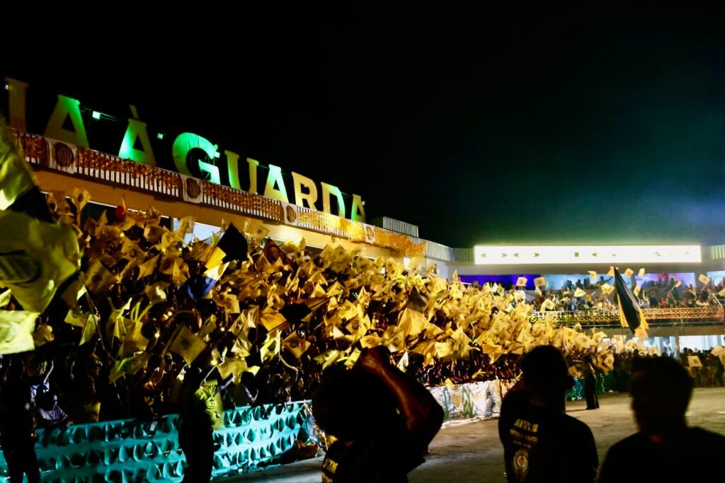 Carolina Araújo, guerreira indígena que representa o item 19, entrou em cena exaltando a força e a resistência dos povos originários, incorporando em sua apresentação a ancestralidade e a luta indígena. Em seguida, Flávio Amadeu, pajé, levou à arena uma performance marcada pela espiritualidade e pela defesa da demarcação das terras indígenas.