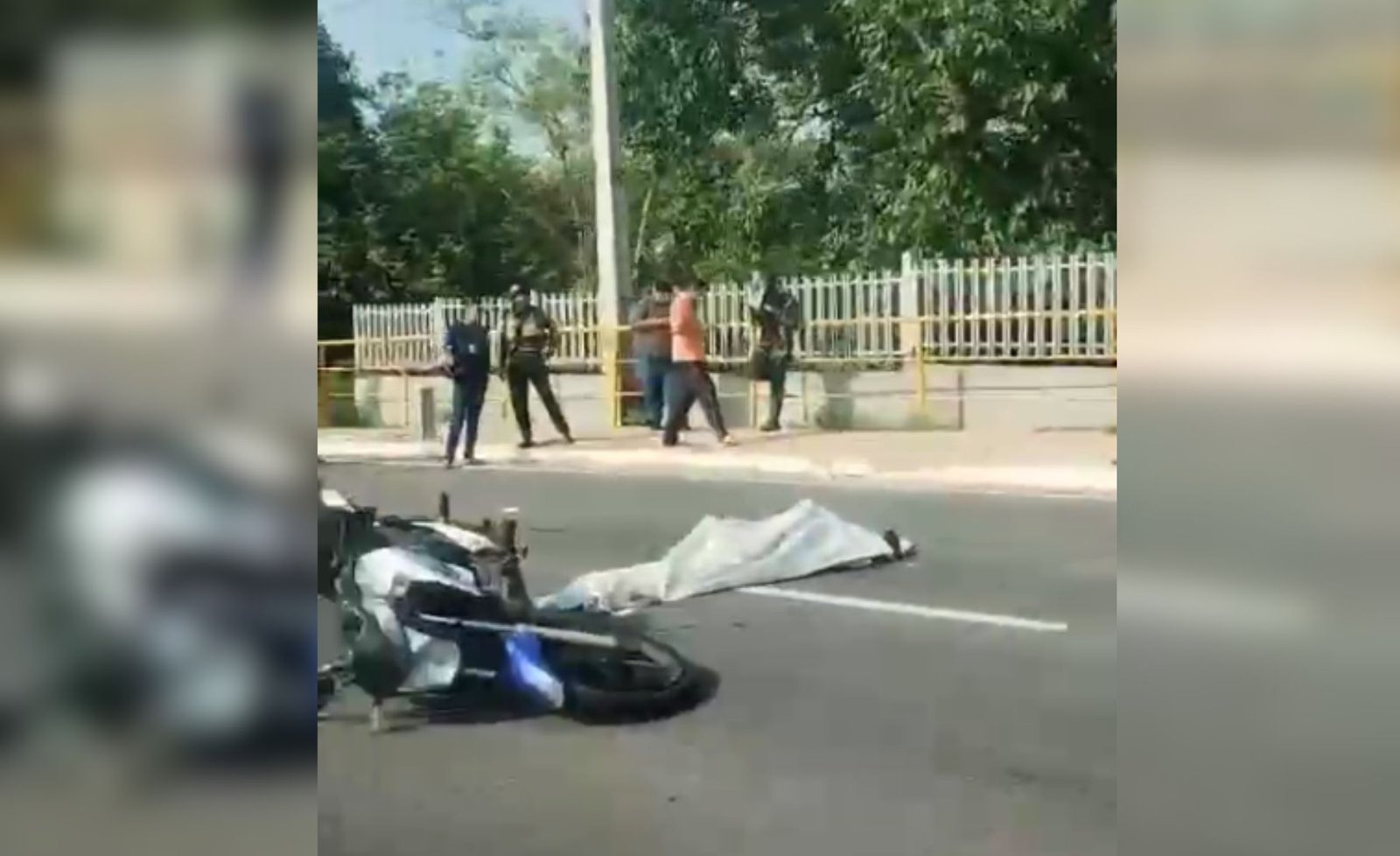 A vítima estava na garupa de uma motocicleta com seu marido quando os dois caíram