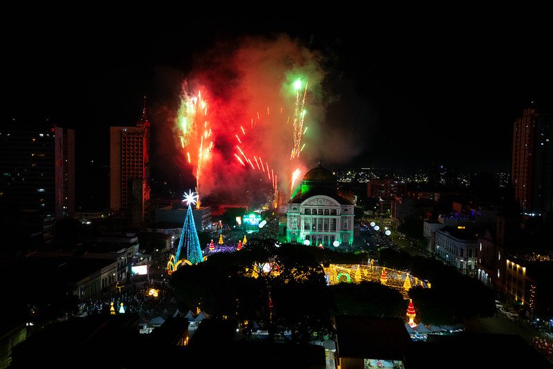 De forma inédita, o Governo do Amazonas realizou o Réveillon do Largo, no centro de Manaus. Mais de 28 mil pessoas passaram pelo local e puderam celebrar a chegada de 2024 ao lado do Teatro Amazonas, um dos principais pontos turísticos do estado.