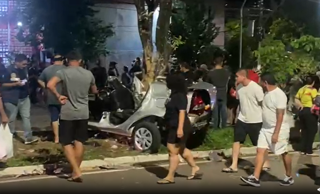 Além das mortes das duas garotas, outras quatro pessoas ficaram feridas no acidente que deixou o carro, um Toyota Etios, destruído após colidir com uma árvore no canteiro central da via.