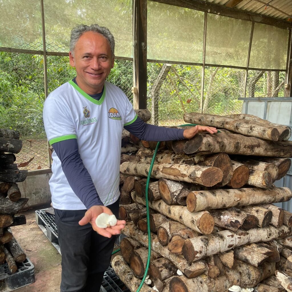 A atividade foi realizada no centro instalado na propriedade do agricultor João Bosco André Gordiano, que atua na produção de adubo orgânico, cogumelos da Amazônia, avicultura, minhocultura e outros itens sem o uso de produtos químicos.