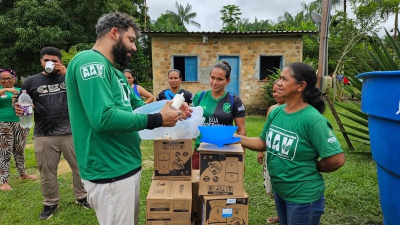 A Reseva de Desenvolvimento Sustentável (RDS) Rio Amapá é uma das primeiras inseridas na ação e os moradores comemoram acesso à água potável. Eles receberam kits para garantia de água limpa durante a estiagem 2024.
