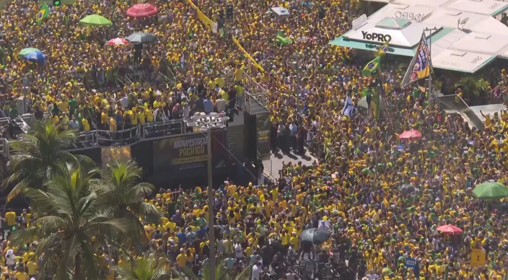 RIO DE JANEIRO (RJ) – A Manifestação em Defesa da Anistia, realizada neste domingo, 16/3, na Praia de Copacabana, Rio de Janeiro, reuniu apoiadores que, além de defenderem a anistia para os envolvidos nos atos de 8 de janeiro de 2023, também demonstraram apoio à candidatura do ex-presidente Jair Bolsonaro (PL) em 2026.