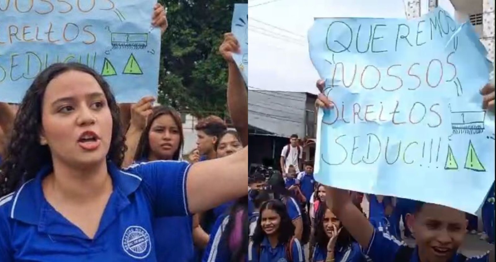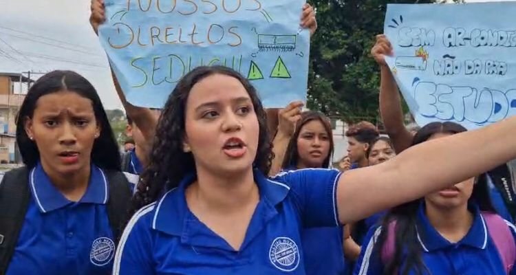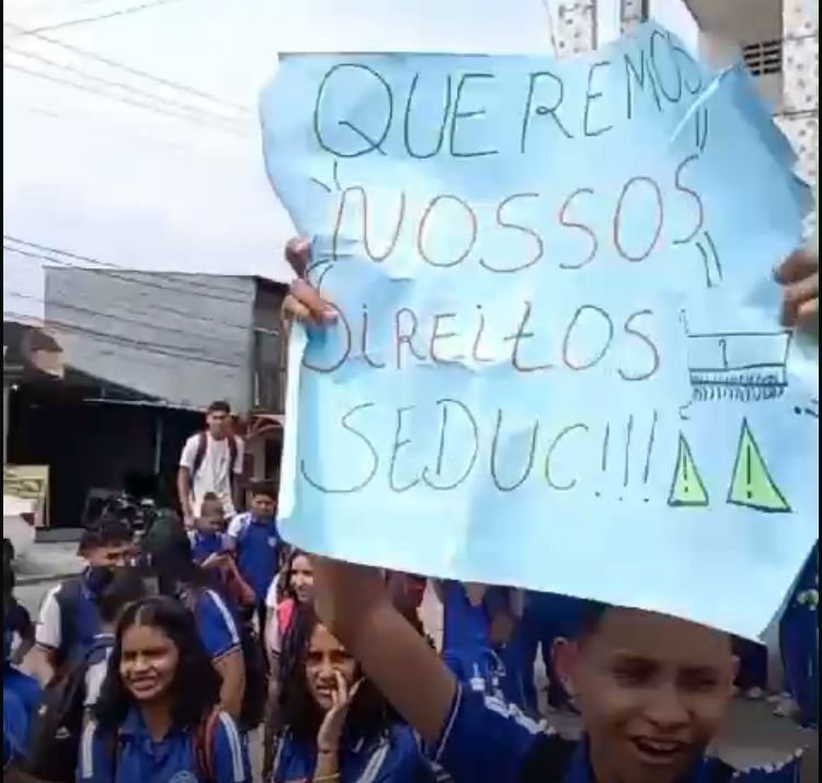 Um grupo de estudantes realizou o protesto em frente à sede da escola utilizando cartazes com as mensagens: “Queremos ar-condicionado” e “Queremos nossos direitos Seduc”, exigindo mais qualidade no ensino à Secretaria de Estado de Educação do Amazonas.
