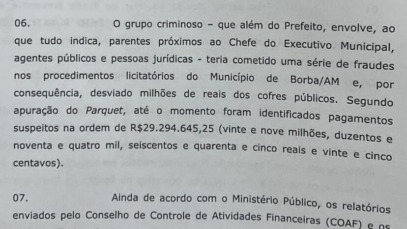 Em comunicado à imprensa, o Ministério Público do Amazonas informou que, por meio do Gaeco, realizou a operação “Garrote” que tem o objetivo de “desarticular uma organização criminosa suspeita de desviar recursos públicos no município de Borba”.