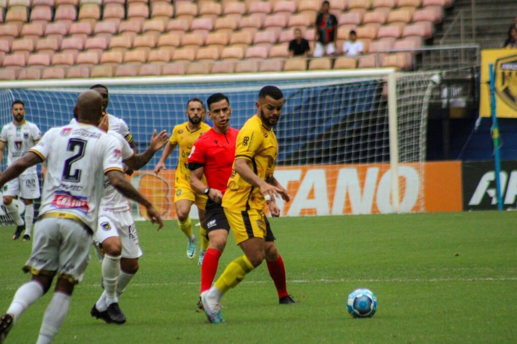 A partida começou com o Amazonas tomando a iniciativa. Com mais posse de bola, o aurinegro abriu o placar aos 11 minutos. Thiago Spice invadiu a área e tentou passe para Igor Bolt, a bola foi mal afastada pela zaga adversária e caiu nos pés do camisa 7, que finalizou para as redes.