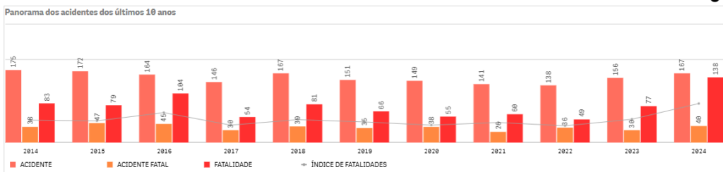 Painel do panorama dos acidentes no últimos 10 anos no país (Divulgação)