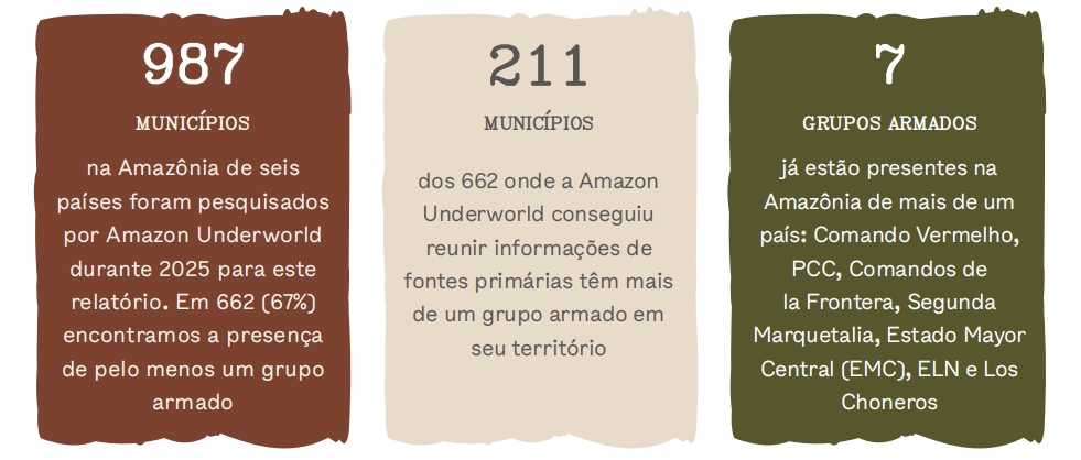 “Essa convergência faz da Amazônia uma das regiões mais violentas e dominadas pelo crime do mundo. As alianças entre grupos do crime organizado permanecem voláteis e temporárias, enquanto as disputas territoriais por corredores de tráfico, mercados de drogas e áreas de produção catalisam a violência nos territórios rurais e urbanos da Amazônia”, afirma o estudo.