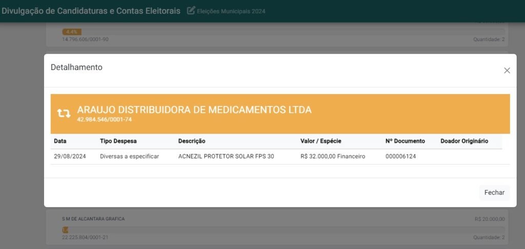 A REPORTAGEM entrou em contato com a assessoria do candidato e aguarda retorno sobre o que motivou a compra dos produtos. O espaço segue aberto para esclarecimentos.