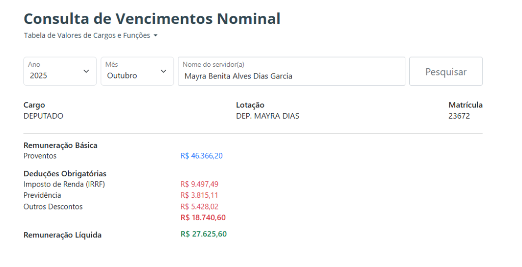A denúncia também aponta que, desde o início da legislatura 2023-2026, os parlamentares estariam recebendo valores “acima do teto constitucional”.