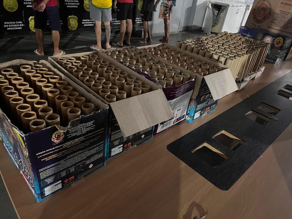 Durante a ação, as equipes também apreenderam drogas, caixas com cerca de 1 mil explosivos – intactos e deflagrados – e outros materiais usados em foguetórios e atos de apologia a facções criminosas. A ação foi realizada pela Polícia Militar (PMAM) e Polícia Civil (PCAM) em Manaus e em municípios do interior do estado.