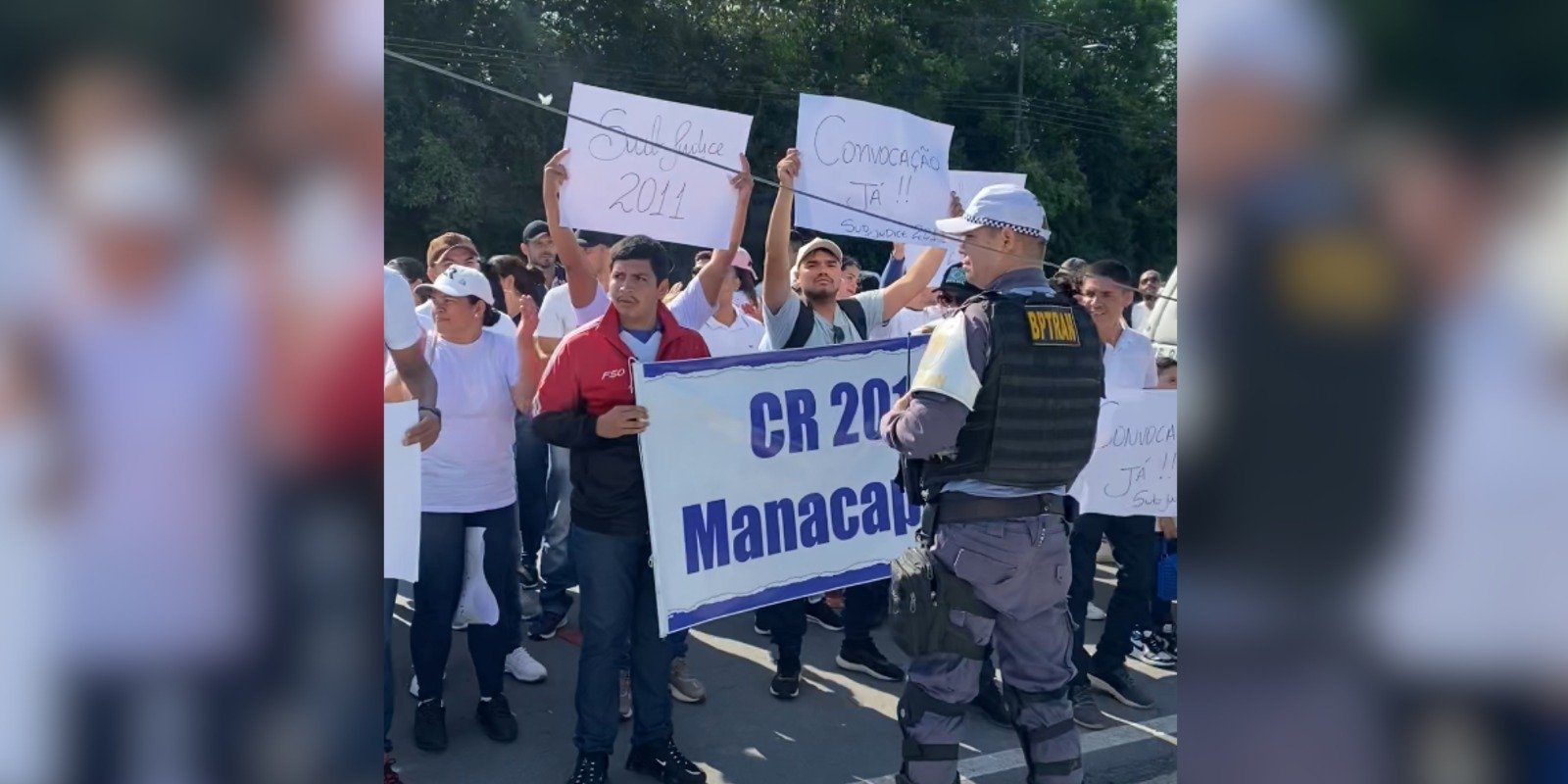 O presidente da associação dos concursados da Polícia Militar, Fábio Mota, explicou que a manifestação tem como objetivo reivindicar a chamada dos aprovados em concurso de 2011. De acordo com o representante, três decisões judiciais a favor não foram cumpridas pelo governo estadual.