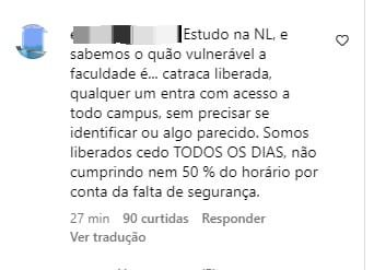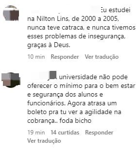 Estudantes da universidade repercutiram o crime nas redes sociais. Alguns alunos criticaram a falta de segurança e estrutura da instituição.
