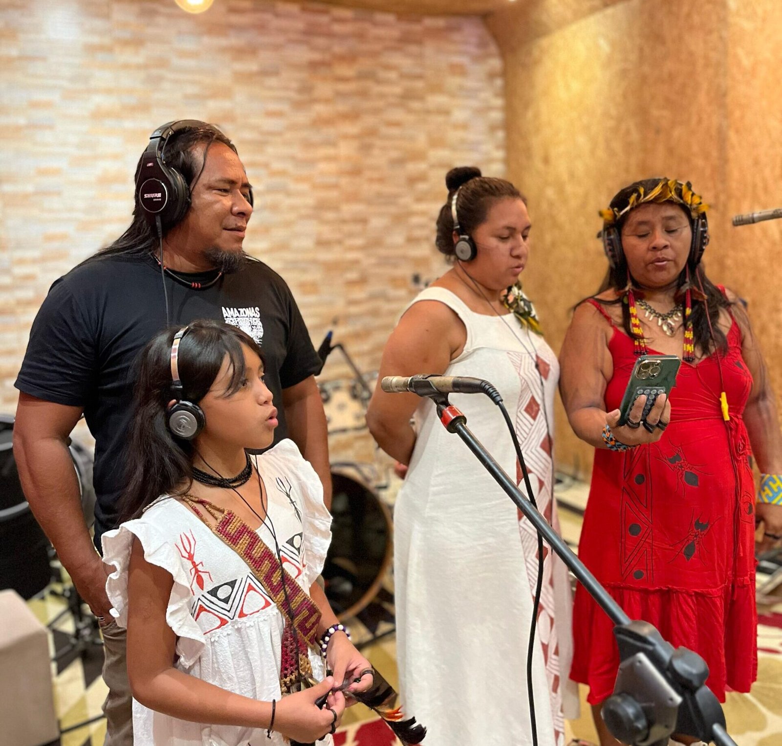 Lideranças indígenas gravam a toada 'Artesãs Indígenas' (Foto: Iasmina Saraiva)