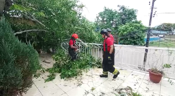 No Dom Pedro, uma árvore tombou na varanda de uma residência de dois andares e danificou parte do telhado. O Corpo de Bombeiros Militar do Amazonas (CBMAM) foi acionado para atender a ocorrência.