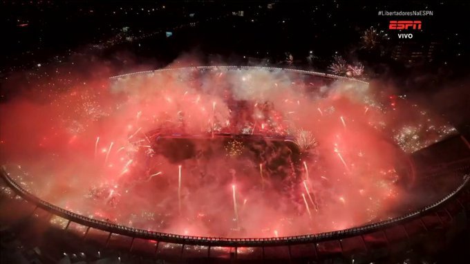 O torcedor do River Plate fez uma grande festa no Monumental de Núñez para tentar apoiar a sua equipe, que precisava ao menos marcar três gols para conseguir decidir a classificação na cobrança de pênaltis.