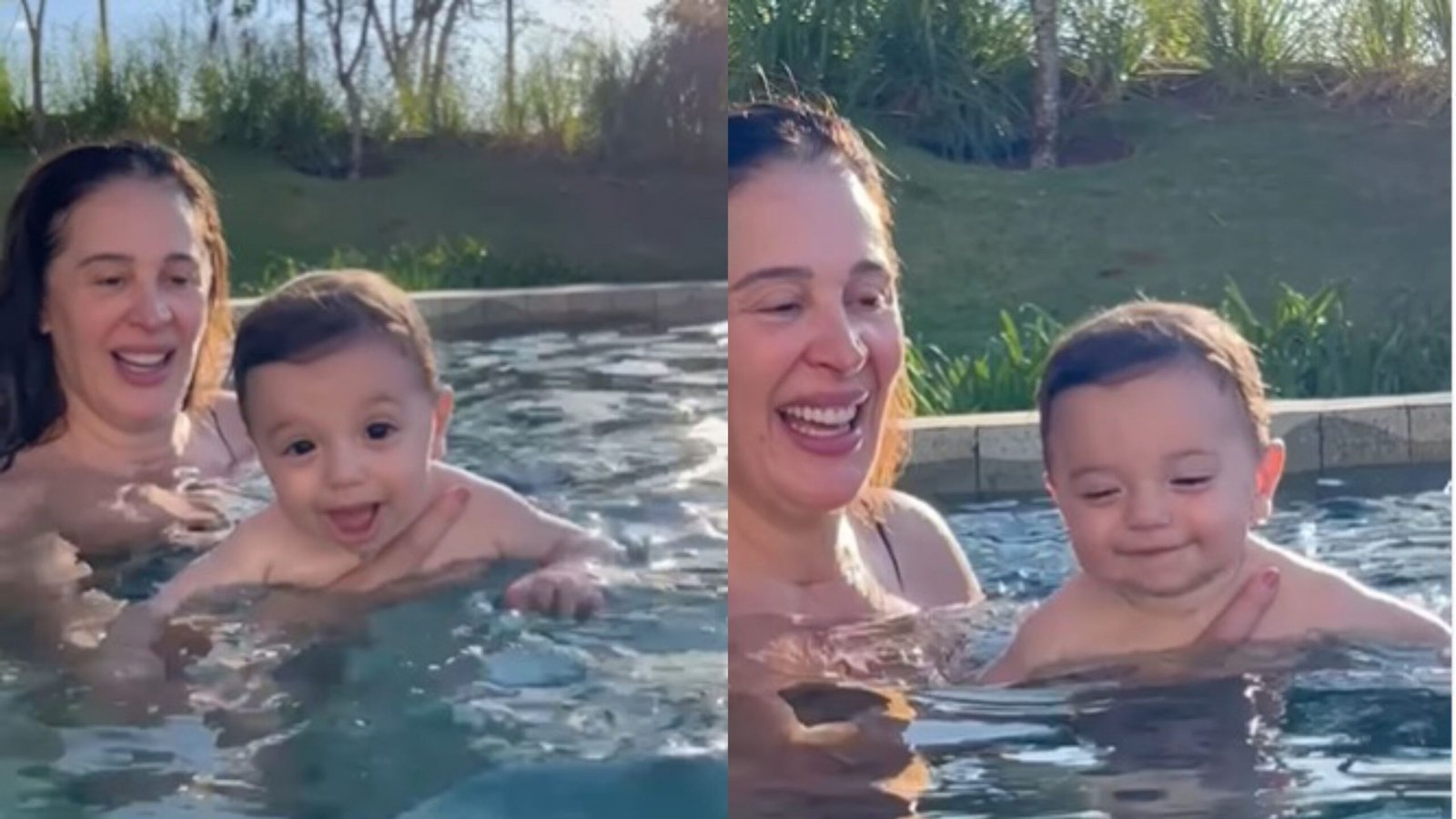 A atriz Claudia Raia compartilhou no domingo, 29/10, mais um momento fofo com seu filho caçula chamado Luca. No vídeo publicado pela atriz no Instagram, o bebê de 8 meses aparece com a mãe tomando banho de piscina.