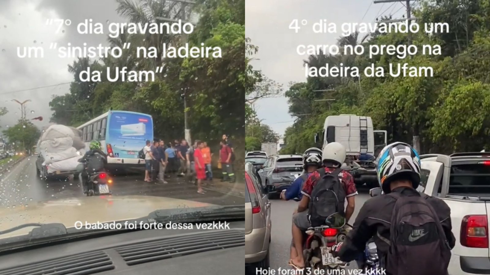 Nos vídeos divulgados nas redes sociais, é possível observar que, no primeiro dia, um carro preto, modelo Gol, apresentou falha na subida da ladeira e precisou permanecer no local. Nas imagens, um agente do Departamento Estadual de Trânsito do Amazonas (Detran-AM) aparece orientando o fluxo dos demais veículos.