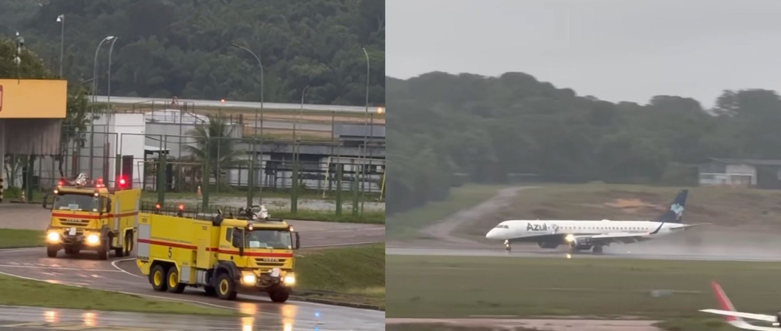 Avião da Azul faz pouso de emergência durante forte chuva em Manaus - (Frames: Aviação Amazônia)