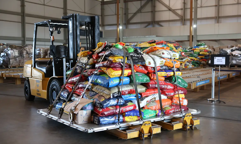 BRASÍLIA (DF) – A Força Aérea Brasileira (FAB) embarcou nesse sábado, 18/5, 20 toneladas de ração doadas para o Rio Grande do Sul. Além da ração, para alimentar os cães e gatos vítimas das enchentes que devastaram a maior parte do estado, a aeronave KC-390 Millennium também levou itens essenciais para pets, como caixas de transporte, camas e bebedouros.