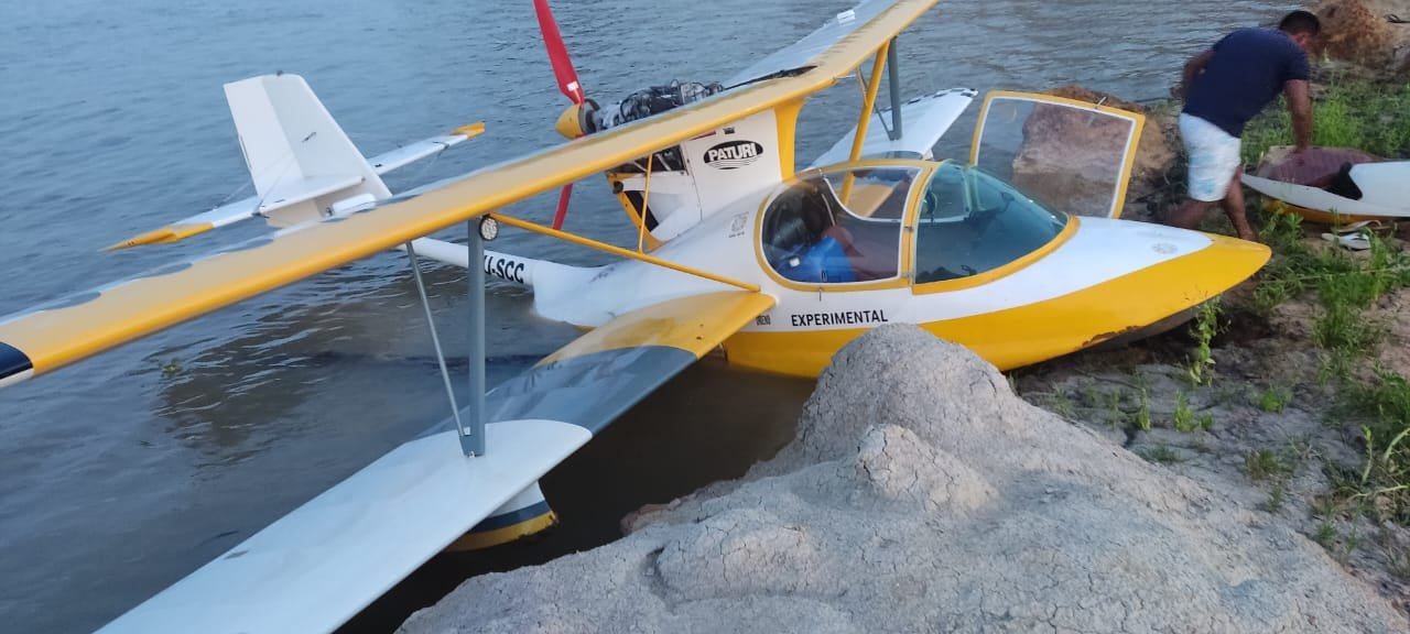 Moradores locais entraram em contato com a Polícia Militar, relatando que um avião de pequeno porte havia caído e estava sendo rebocado por uma canoa em direção à margem do rio.