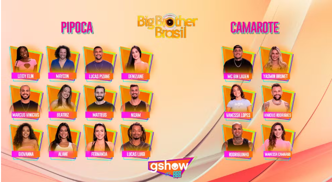 Neste ano, o anúncio ocorre de maneira inédita: 18 nomes serão revelados na sexta. Todos fazem parte do grupo Pipoca, de anônimos, e Camarote, de personalidades já conhecidas. No domingo, 7, durante o Fantástico, mais sete homens e sete mulheres serão apresentados.