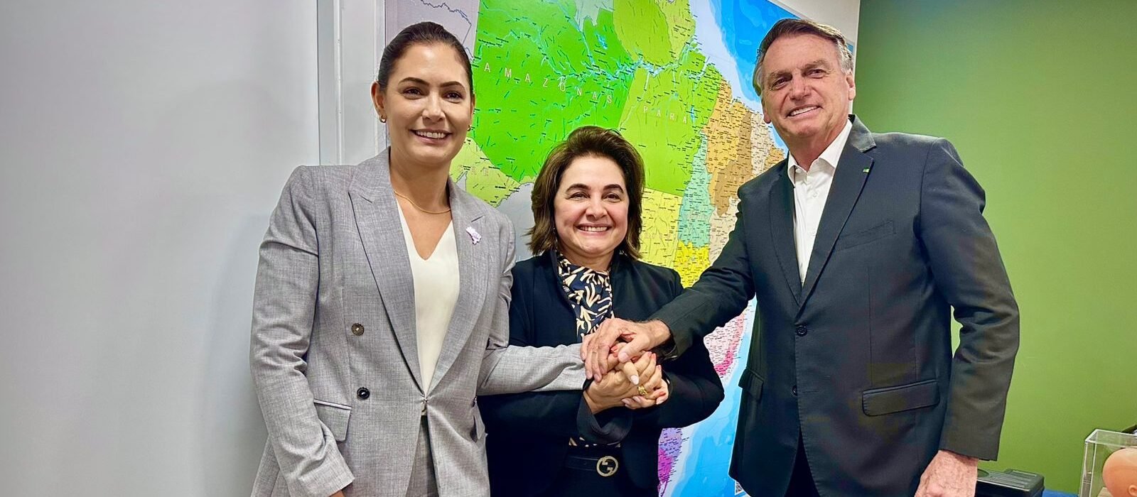 “Amazonas de cara nova. Professora Maria do Carmo, nossa pré-candidata ao Governo do Estado”, afirmou Bolsonaro.