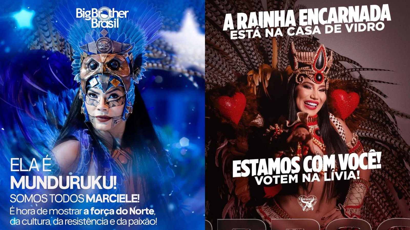 MANAUS (AM) – Os bois-bumbás Caprichoso e Garantido, em postagens nas redes sociais, levantaram um mutirão de apoio para Marciele Albuquerque (cunhã-poranga) e Lívia Christina (rainha do folclore), que estão confirmadas na Casa de Vidro do BBB 26, em Manaus.