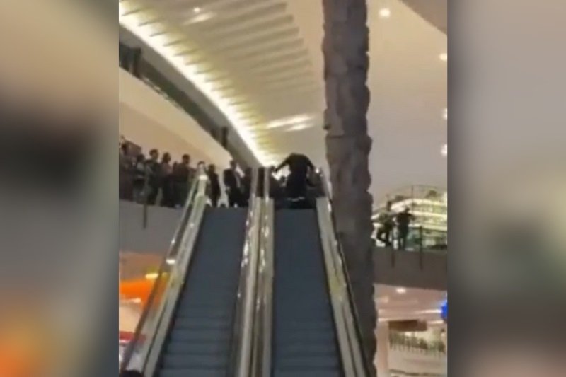 Preso, o animal grita de dor e chama a atenção de populares que se aglomeram em torno da escada rolante. Na ocasião, a tutora tenta retirar o pet de entre os degraus sem sucesso. Seguranças e outros profissionais do shopping correm em direção à escada na tentativa de retirar o animal, que fica com a pata machucada. O ocorrido gerou um tumulto em torno da escada em que o animal estava.