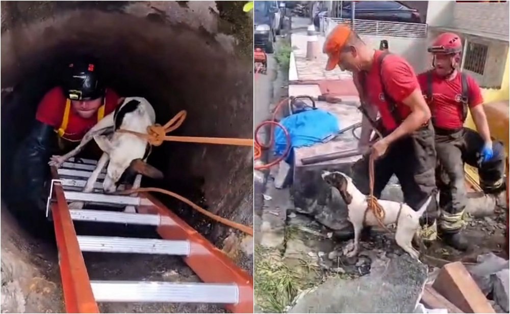 O que começou como um sábado comum acabou se transformando em uma operação de salvamento. O cachorro ficou preso em uma galeria de concreto, sem conseguir sair por conta própria, o que demandou a mobilização de bombeiros especializados.