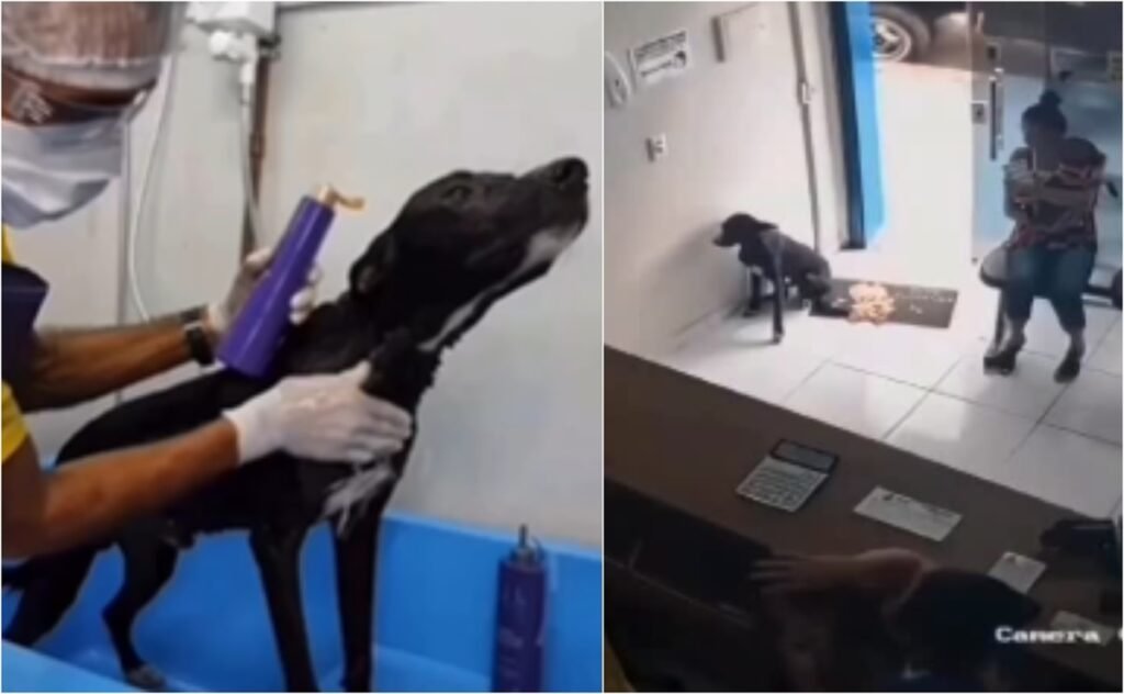 As imagens, registradas pelas câmeras de segurança da clínica em março de 2021, mostram o animal entrando machucado, sentando-se próximo a uma parede e esticando a pata, como se implorasse por socorro.