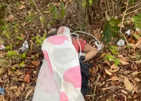 O cadáver estava enrolado em um lençol com o pescoço e as mãos amarradas, em uma área do Polo Industrial de Manaus, jogado entre uma calçada e uma área de vegetação.