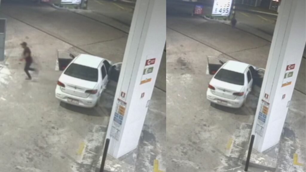 MANAUS (AM) – Um homem identificado como Orleilson da Silva, de 28 anos, foi morto dentro de um táxi durante o trajeto entre Iranduba e Manaus na noite dessa quinta-feira, 21/11. Câmeras de segurança de um posto de gasolina registraram a ação criminosa.