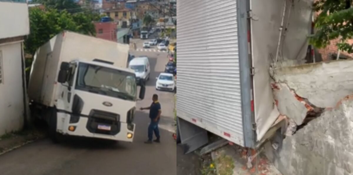 Imagens feitas no local mostram que o caminhão perdeu força ao tentar subir e acabou descendo de ré, atingindo a parte frontal da residência.