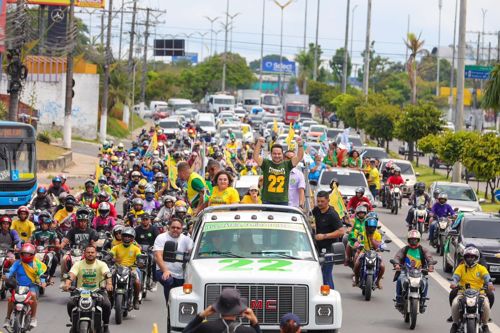 Durante o evento, realizado na avenida Margarita, no bairro Cidade de Deus, Alberto Neto destacou a força do seu grupo político, afirmando que “quando o povo quer, não tem jeito. Manaus é 22.” A motocarreata foi marcada por uma predominância de cores verde e amarela, simbolizando os valores que a campanha defende: Deus, Pátria, Família e Liberdade.