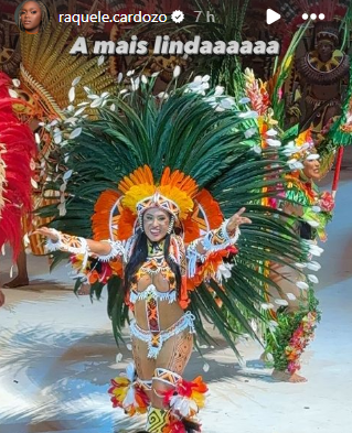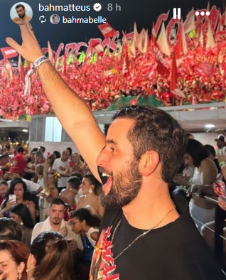 Matteus Alegrete também estava eufórico com a apresentação do Garantido. O vice-campeão do BBB24 cantou na arquibancada “Eu nasci pra ser vermelho”, e registrou em suas redes sociais a apresentação da sua amada Isabelle Nogueira, cunhã-poranga do boi perreché, com direito a declaração de amor.