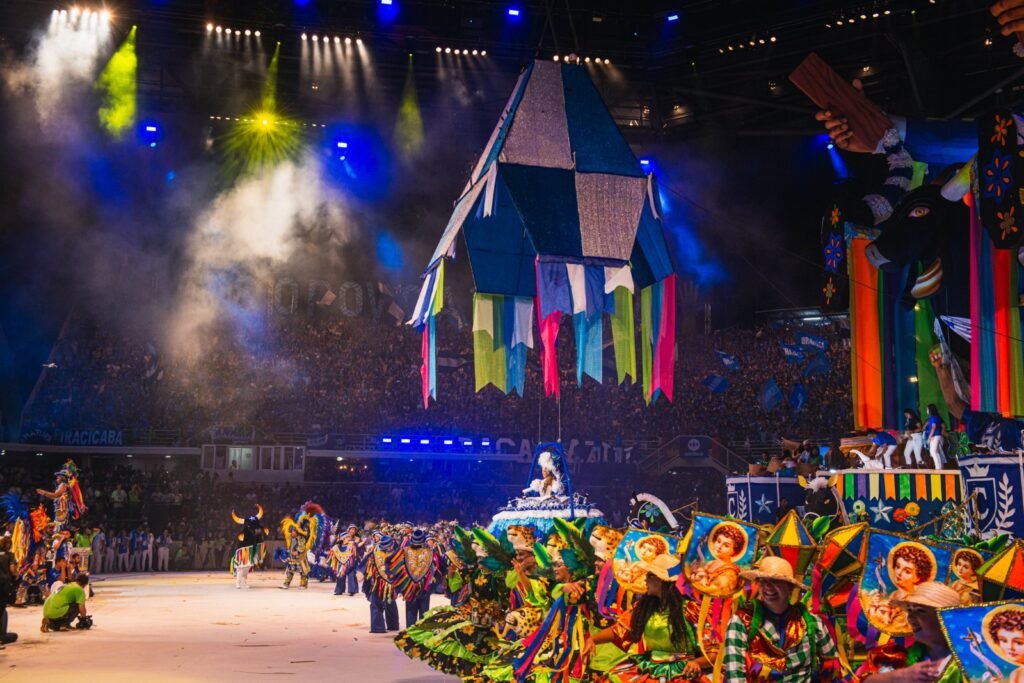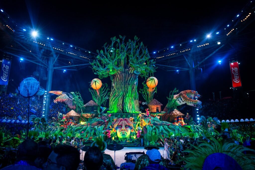 A primeira alegoria foi “Lenda Amazônica“, que narrava a história do povo Macurap enfrentando uma grande inundação e assumindo a missão de proteger o povo da floresta. A obra do artista Alex Salvador se destacou, transformando a arena em uma vasta floresta com efeitos e detalhes impressionantes.