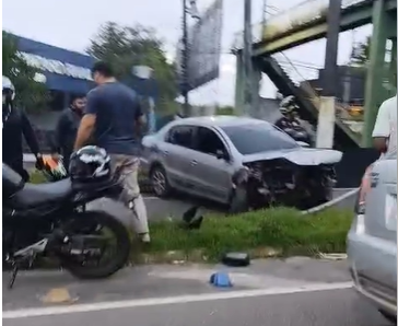 Imagens compartilhadas nas redes sociais mostram um carro com a frente totalmente destruída após colidir contra a pilastra de um viaduto, nas proximidades do Conjunto João Bosco. O veículo ficou atravessado na pista, dificultando a passagem de outros automóveis.