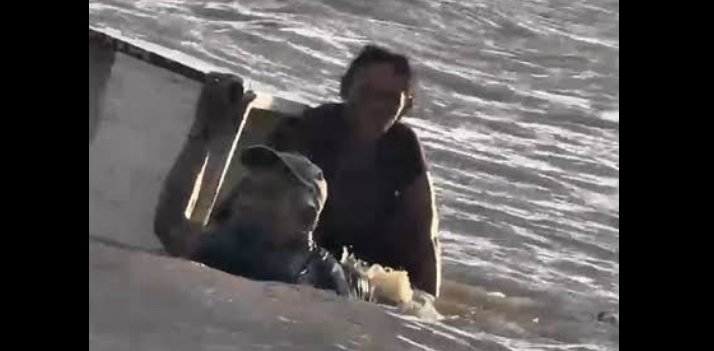 Para não se afogarem, Raimunda Lima, de 52 anos, e José Carlos Ferreira, de 61, agarraram-se a uma porta de geladeira que boiava no rio. Segundo o casal, o acidente foi provocado pela combinação de chuva intensa e banzeiros.