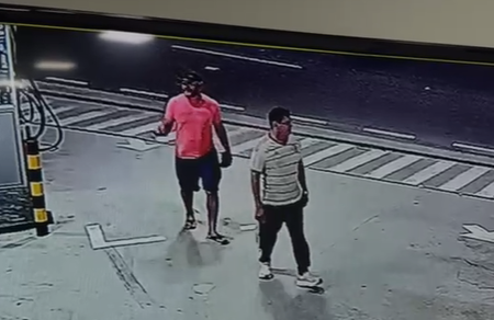 Em um vídeo registrado por câmeras de vigilância de um posto de combustíveis, a vítima aparece acompanhada de um homem momentos antes de ser morto.