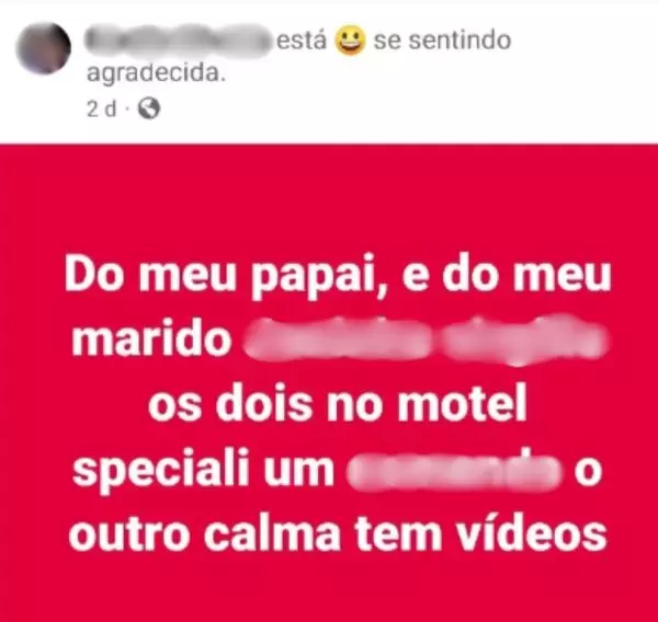 O perfil usado para divulgar as informações sobre o caso foi o de Camila, mas não há confirmação de que ela tenha sido a autora das postagens que revela todo o caso, entre o sogro e o genro, com fotos, vídeos e mensagens íntimas.