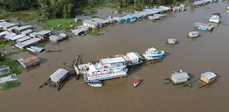 Nas calhas do Alto e Médio Solimões, Juruá, Purus e Alto Madeira, a previsão indica chuvas entre 20 e 30 mm/h, podendo alcançar 50 mm/dia, com ventos intensos de 40 a 60 km/h e risco de incidentes.