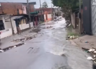 No bairro Colônia Terra Nova, zona Norte, moradores filmaram a água do igarapé transbordando e invadindo a rua, que por pouco não entrou na casa que fica ao lado do local.