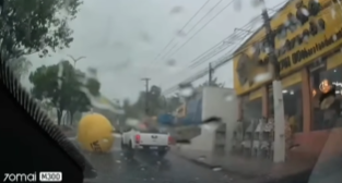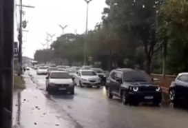 Em vídeos compartilhados nas redes sociais, é possível observar que a força do vento derrubou um fio de energia elétrica, dificultando o tráfego de veículos. Em outro registro, uma bola de publicidade aparece no meio de uma avenida.