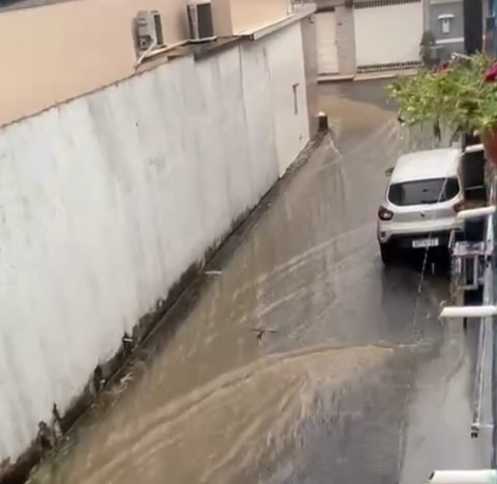 Vídeo que circula nas redes sociais mostra o cruzamento entre as ruas Lobo D’Almada e 24 de Maio alagado