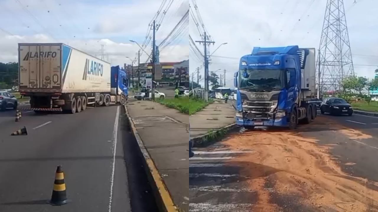 Colisão com carreta provoca congestionamento na avenida das Torres em Manaus